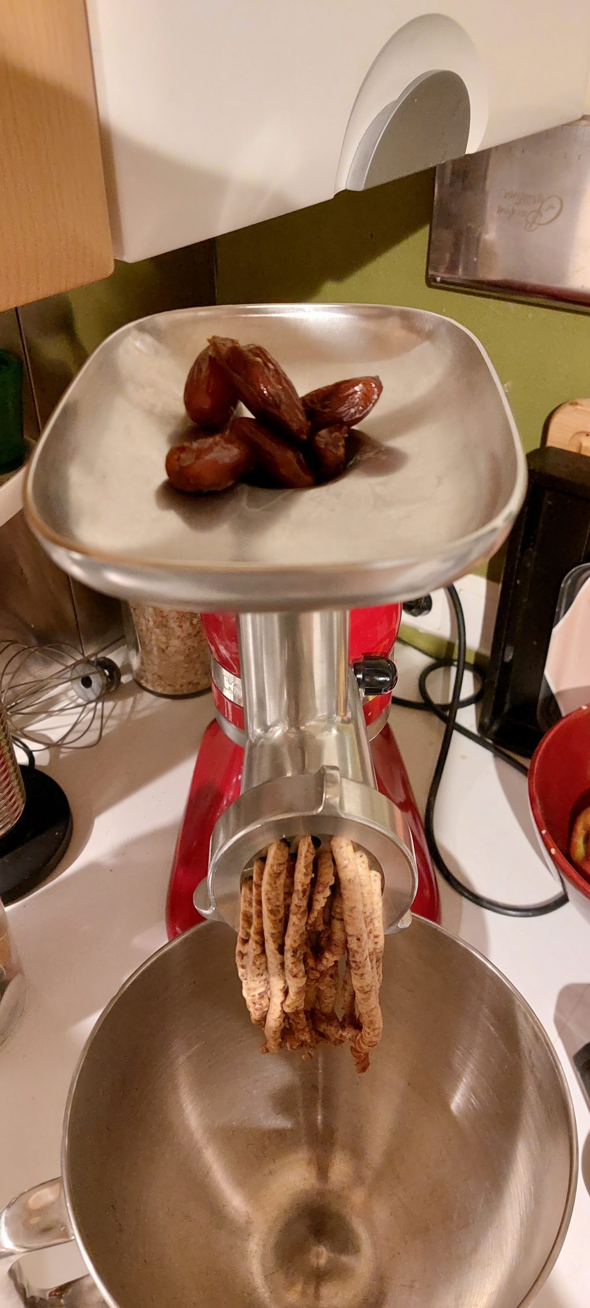 - Trockenfrüchte durch den Wolf drehen (man kann sie auch klein schneiden, aber das dauert …)